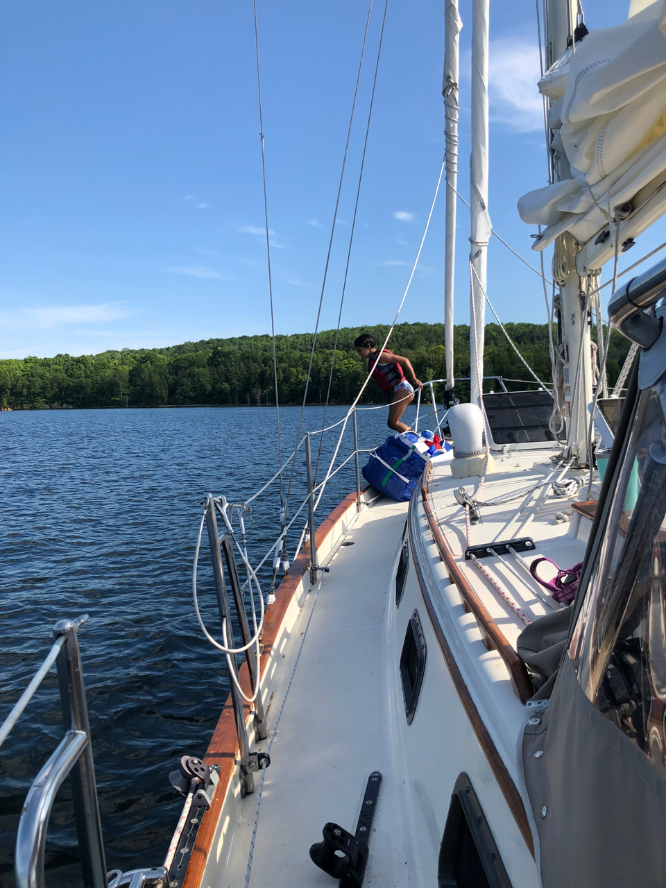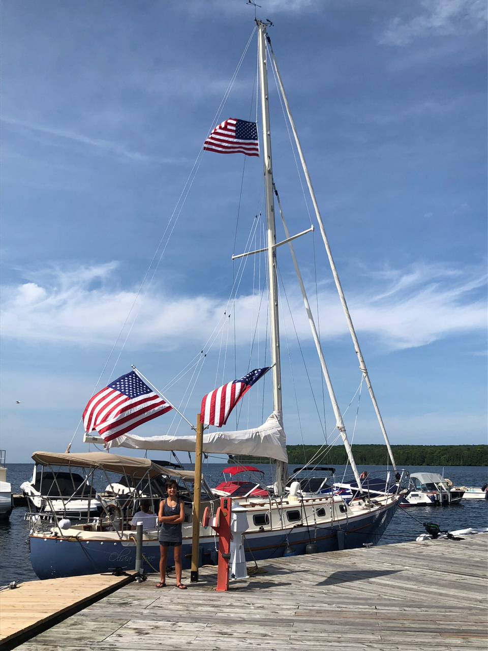 This year, we cruised Green Bay, up and down the Door Peninsula. But for a day or two, I’ve been aboard for 26 days. Joy and the kids were aboard for about 20 of those—our longest “live aboard” experience on the OG. After spending the July 4 holiday in Racine, I singlehanded the boat north to Sheboygan, then to Kewanee, and finally landing in Sturgeon Bay. In a rental car, I then returned home. Two days later the entire family drove north and returned to the boat, intent to spend the next 2 weeks or so harbor-hopping the peninsula.