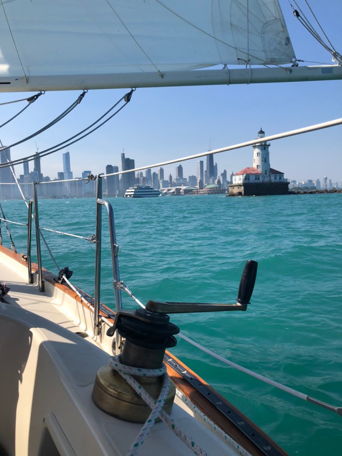 We sailed as much as possible in the build-up to departure. Each year our crossings grew farther from Chicago, to New Buffalo, St. Joseph, South Haven and Saugatuk on the Michigan side, and to Racine, Sheboygan and Washington Island on the Wisconsin side.