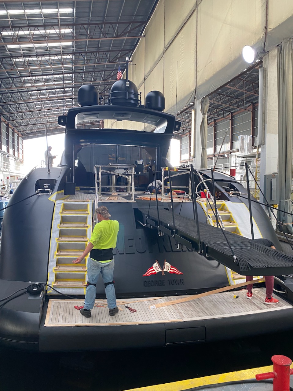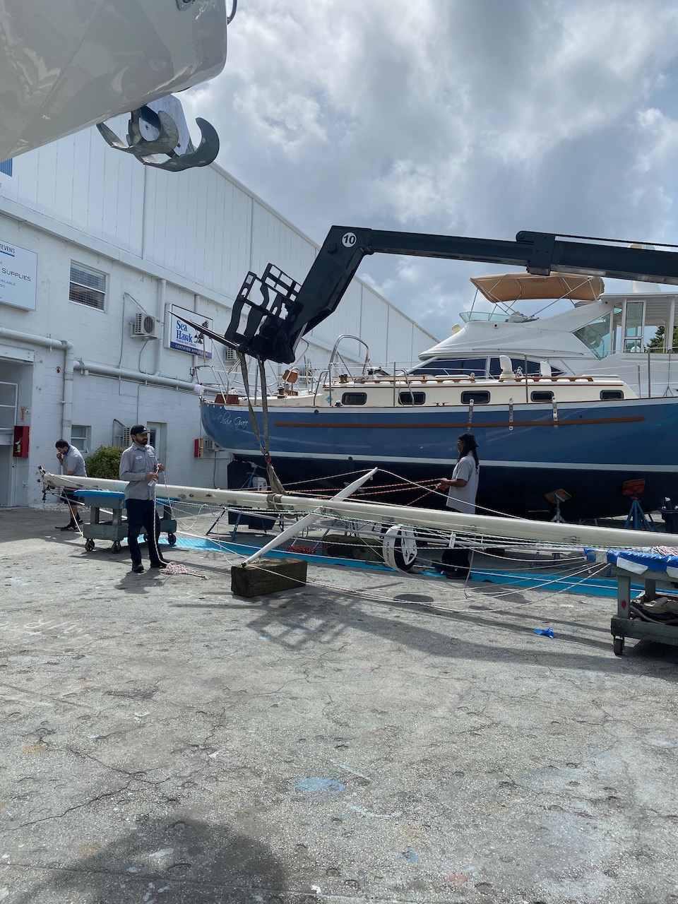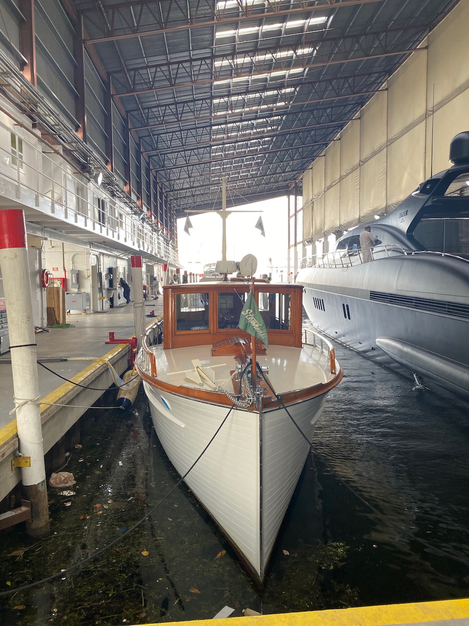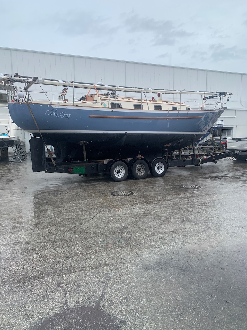 Nationwide Yacht Transport—which turned out to be a dude in a Ford F450— deposited the OG in good condition at RMK Merrill-Stevens boatyard on October 4. He had excellent reviews and I made sure to leave him another. Thanks Brad.