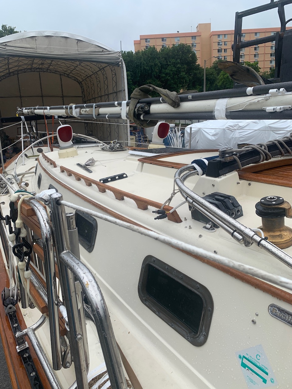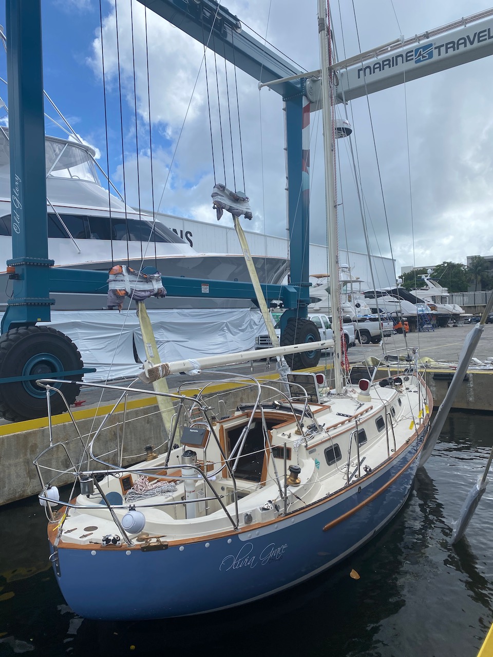 The following day, I left my parents and Pici in Fort Myers and drove to Miami to inspect the boat for damage and to oversee its reassembly. Thankfully, with the exception of some new stains on the interior upholstery, likely caused by insufficiently secured ground tackle, the OG arrived unscathed.