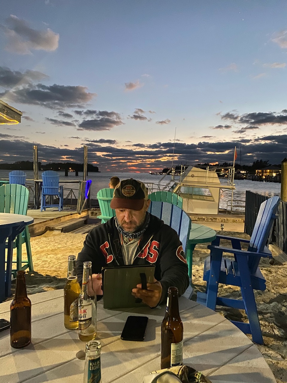 With extended northerlies in the forecast, our hopes for a smooth and comfortable crossing were dashed. Tuesday evening, before sunset, I walked to the waterfront with binoculars in hand, to observe what looked like large elephants marching on the horizon. Not a good sign at all. So, we developed a contingency plan to sail to Key Largo for another round of covid tests, should we not be able to make Bimini.