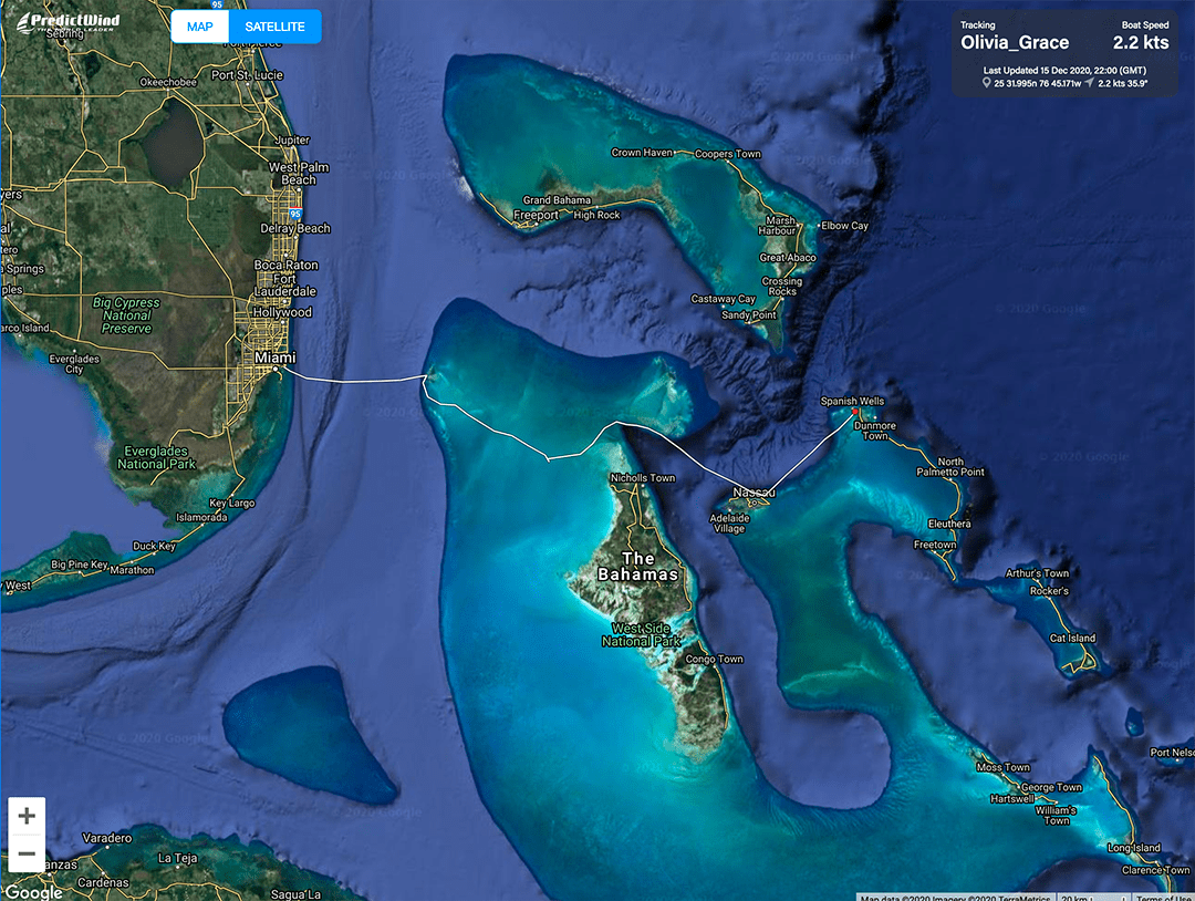 At 4:30 a.m., Sunday December 6 we departed Miami Beach Marina and pointed the bow towards 120°, compensating for Gulf Stream’s set and drift. Conditions were calm and flat with a 15 knt southerly breeze. Perfect. So perfect in fact, that a pod of dolphins began surfing our bow wake right off shore.