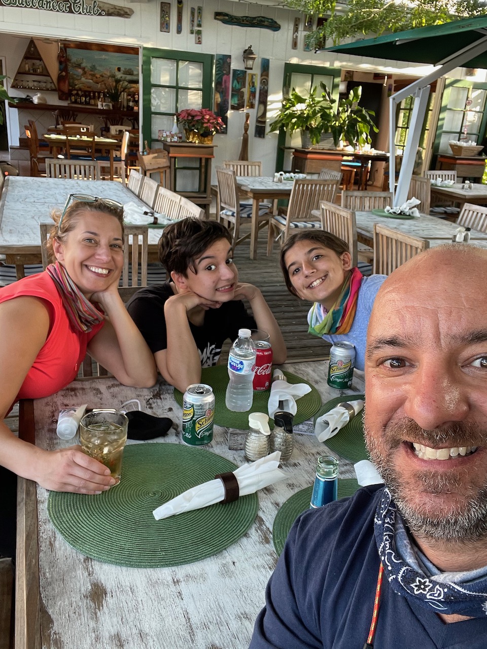 Once the anchor was set, we dinghied into shore, where we met the McGraw family (mentioned in the previous post) for dinner and drinks at “The Boaters Haven.” There, the restaurant owner, Emmitt, sang Bob Marley songs, in addition to his own, to keep us entertained while his son fried up some chicken.