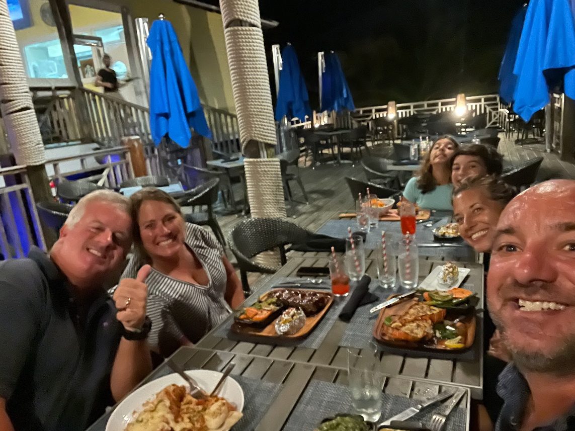 We celebrated the completion of our trip at Buddha’s Snack Shack, where we spent Christmas and New Years, months before. After ordering some rum drinks for the kids and fried cheese for the adults—all appreciative of the familiar surroundings and proud of our collective accomplishment—everyone was tasked with identifying something enjoyable about the trip. Evelyn (“the one with the short hair”) went first: “There’s just too many; we swam with sea turtles and fed hot dogs to reef sharks. . . it’s hard to pick one.” So, shut-up Bill.